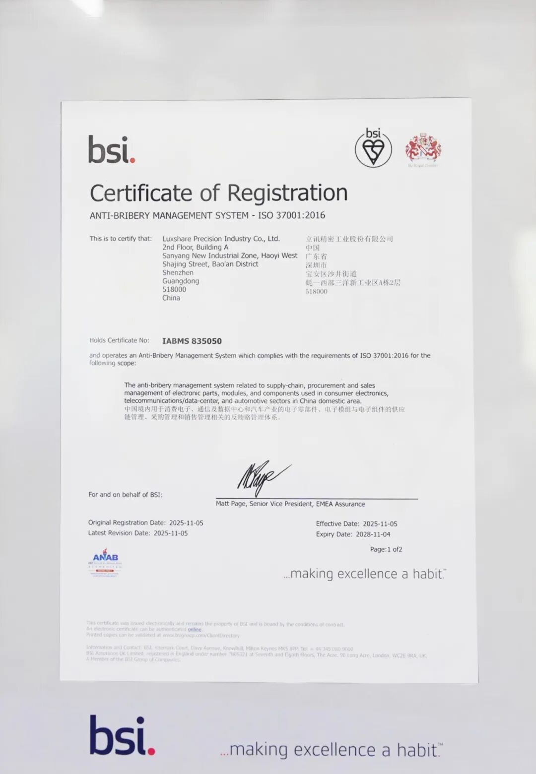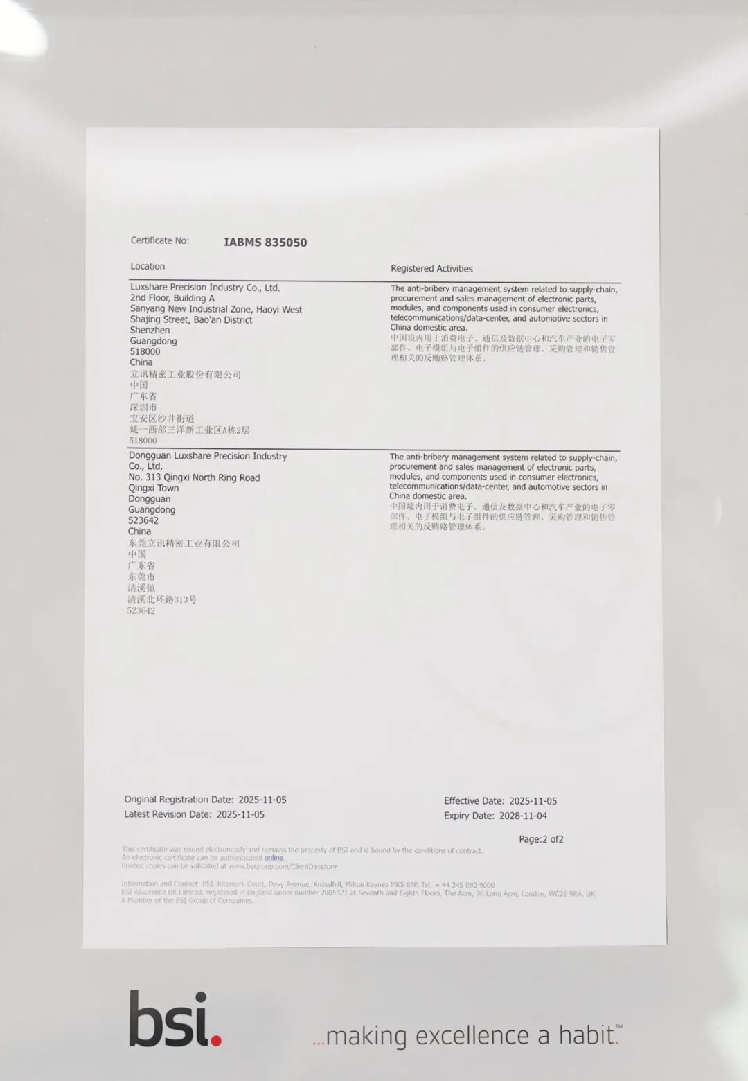 颁证仪式上,BSI大中华区总司理塔缇阿娜·施莫拉克—塔拉索娃女士亲自将ISO 37001反行贿管理系统认证证书递交至搏天堂btt官网细密可一连生长推进中心总监林道锋手中,并对公司重视反行贿管理,通过提防和控制危害,确保高质量生长给予了高度认可。她体现,搏天堂btt官网细密在2025年高质量完成了系统标准化事情,并取得了完善的“零不切合项”的优异审核效果,彰显了贵司在反行贿管理领域的卓越体现,也为行业的可一连生长树立了标杆。